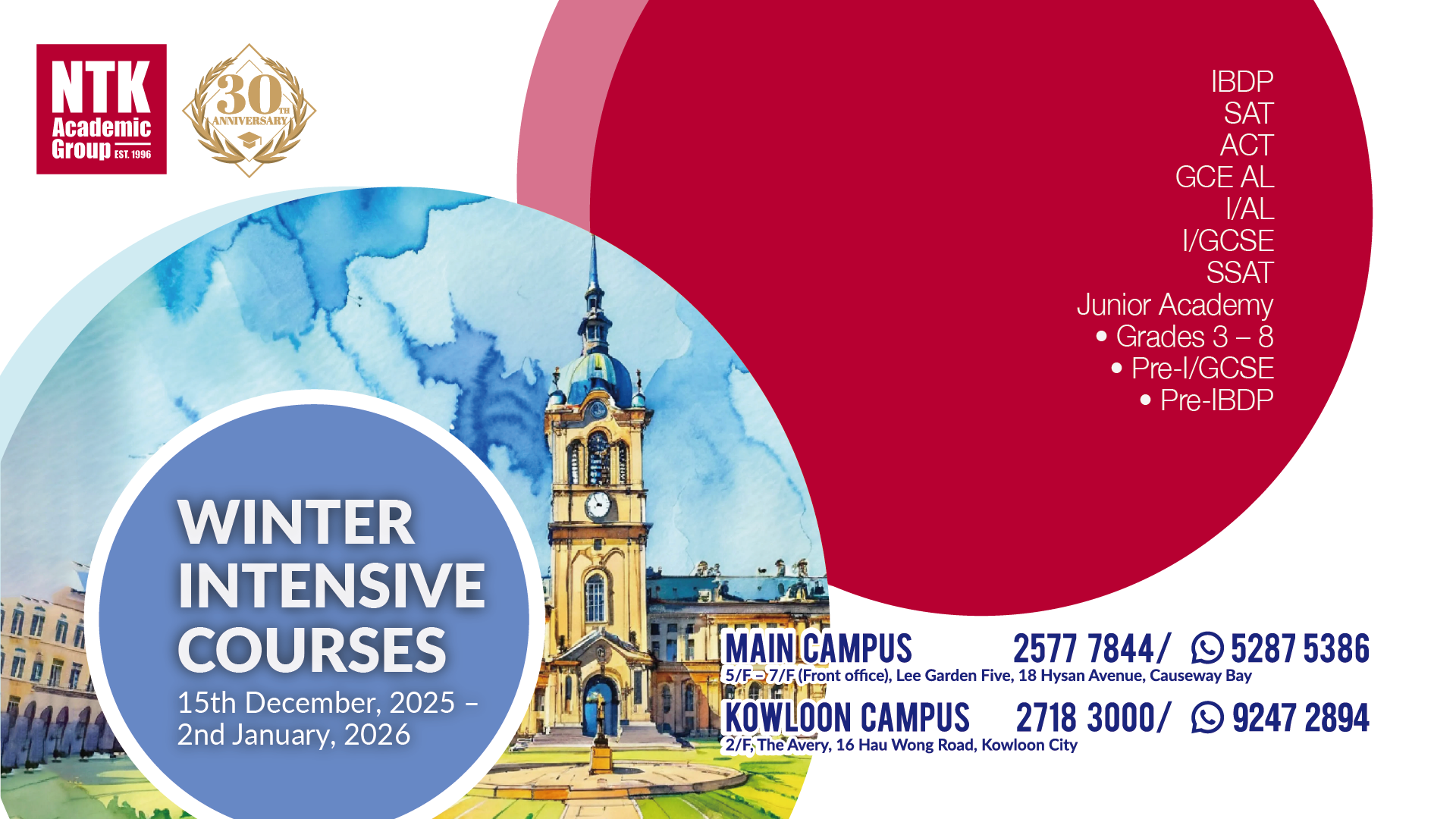 NTK 提供涵盖所有主要科目和课程的教育服务,包括 IBDP、IGCSE、GCE AL、SAT、ACT、AP、SSAT、IBMYP、CEE、TOEFL、 IELTS 及 GMAT 等。我们还提供专业意见及指导,帮助学生申请美国、英国及知名国际大学与寄宿学校。